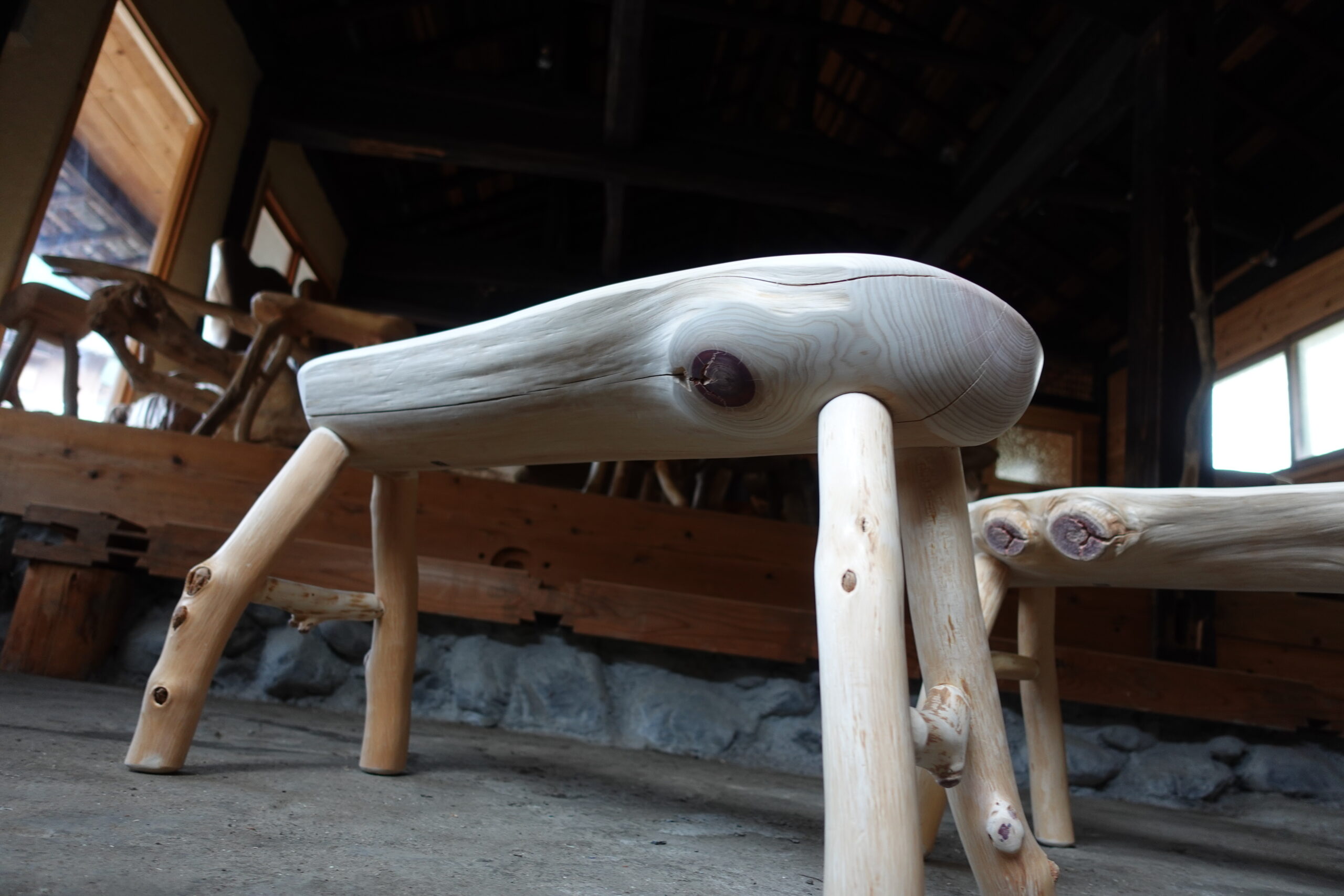 総ヒノキのベンチ
