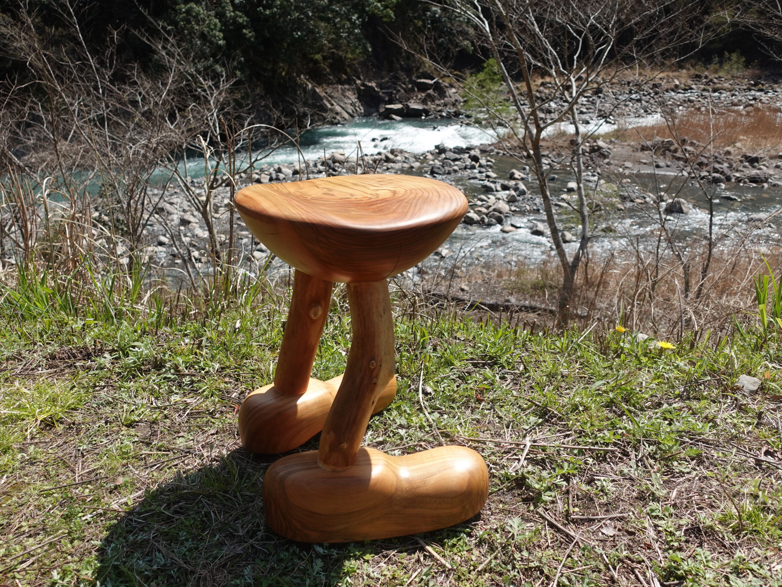 【素材】座面:桜 足:流木 靴:桜